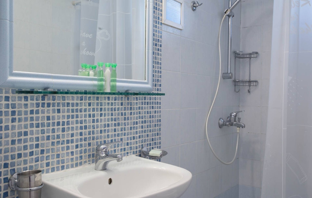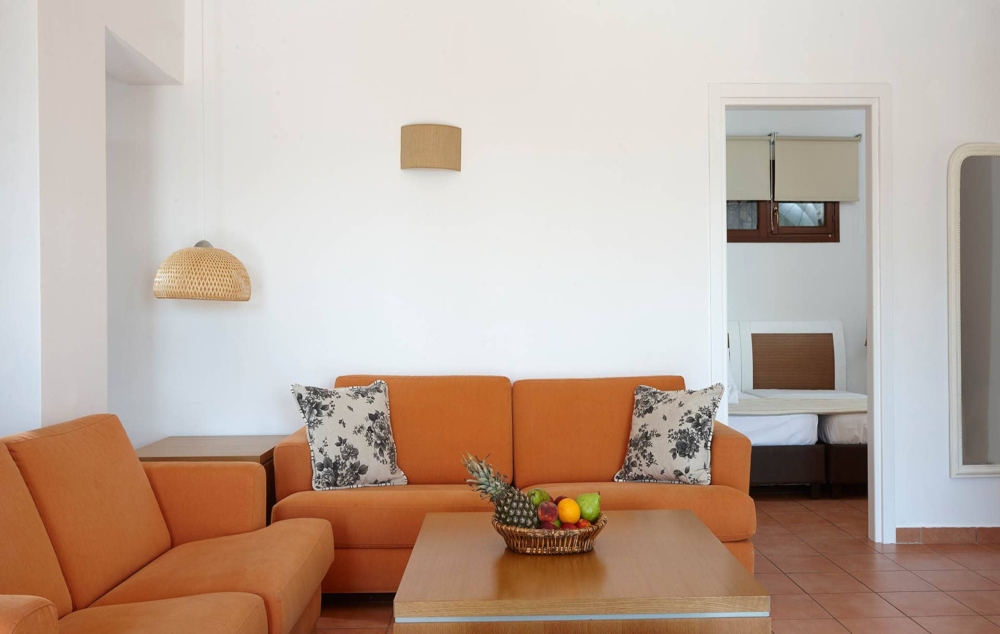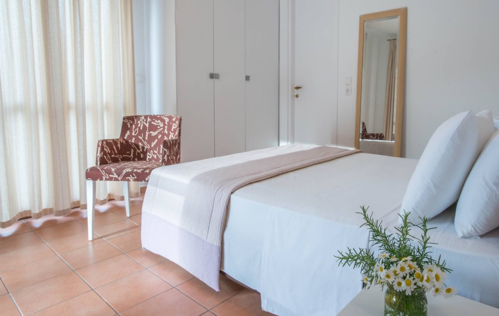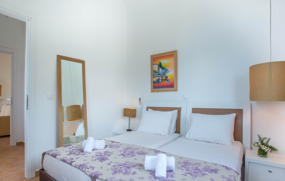 - Τρεις κρεβατοκάμαρες (μία με διπλό κρεβάτι και δύο με μονά κρεβάτια) όλες με ατομικό μπάνιο (ντουζ- στεγνωτήρα μαλλιών), μπαλκόνι και κλιματισμό.