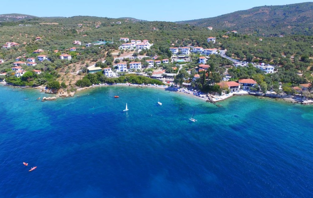 Εκτείνεται σε μια έκταση 30.000 τετραγωνικών μέτρων μπροστά από μια προστατευμένη παραλία, ανάμεσα σε ελαιόδεντρα και πλούσια βλάστηση με υπέροχη θέα στον Παγασητικό Κόλπο.
